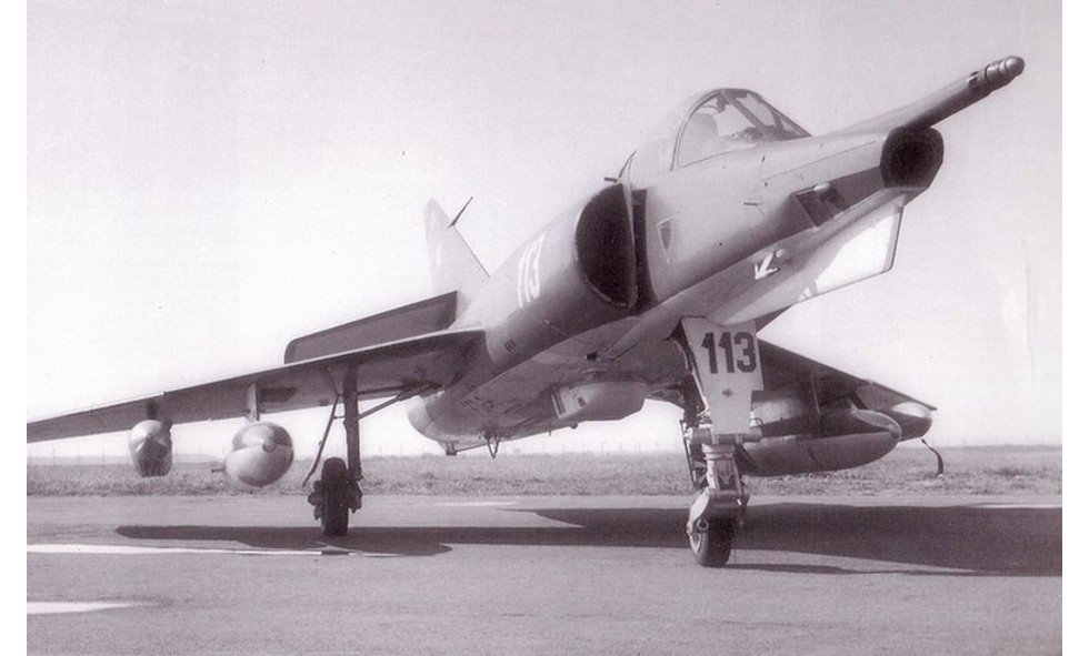 Le 21 mai 1958, un prototype navalisé (surélévation du train avant, nez doté d’un bulbe radar Aïda surmonté d’un nez de perche de ravitaillement escamotable) vola pour la première fois.